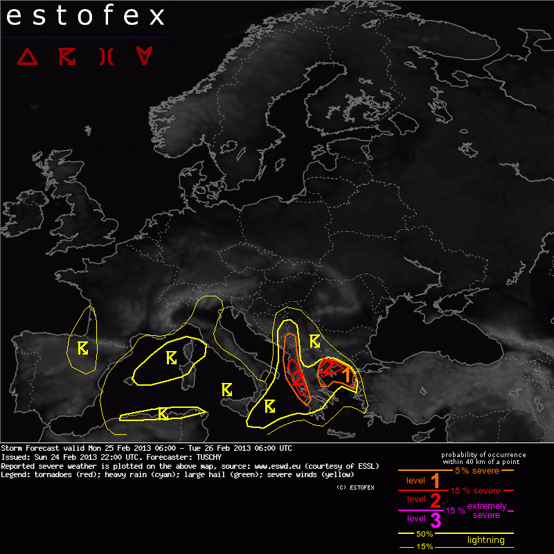 ESTOFEX Severe Weather Forecast 02/25/2013 0600UTC