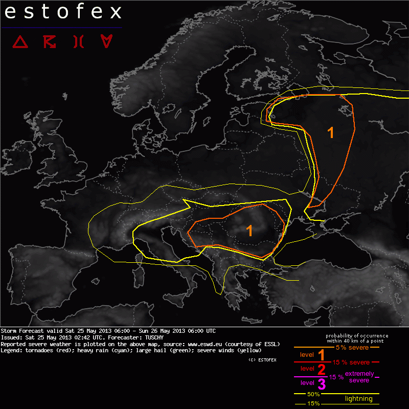 ESTOFEX Severe Weather Forecast 05/25/2013 0600UTC