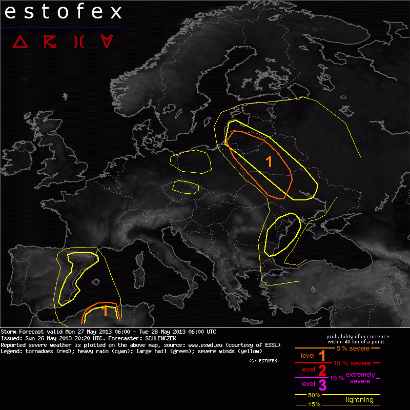 ESTOFEX Severe Weather Forecast 05/27/2013 0600UTC