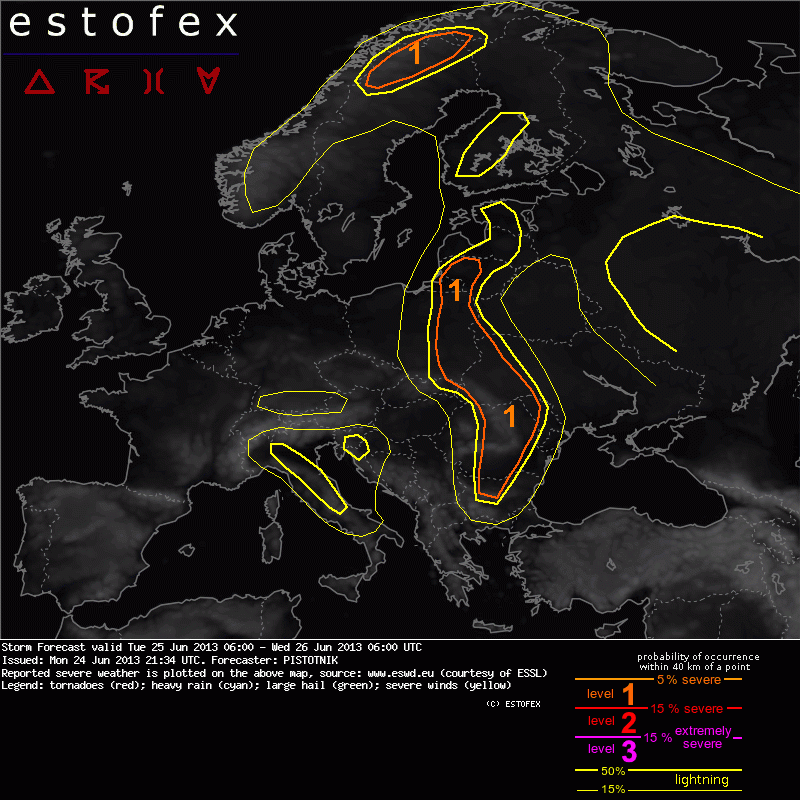 ESTOFEX Severe Weather Forecast 06/25/2013 0600UTC