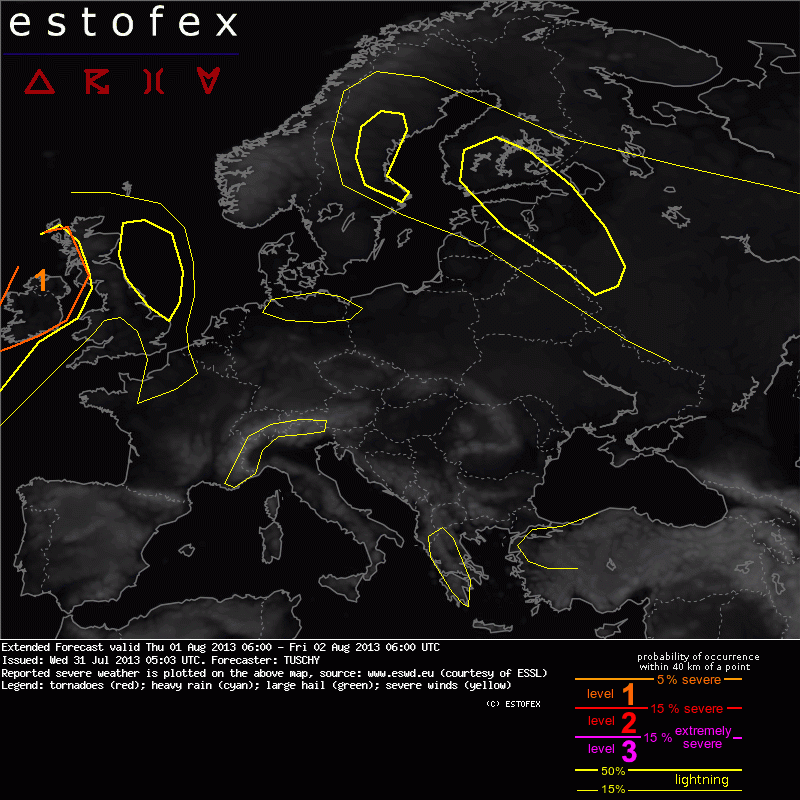 ESTOFEX Extended Severe Weather Forecast 08/01/2013 0600UTC