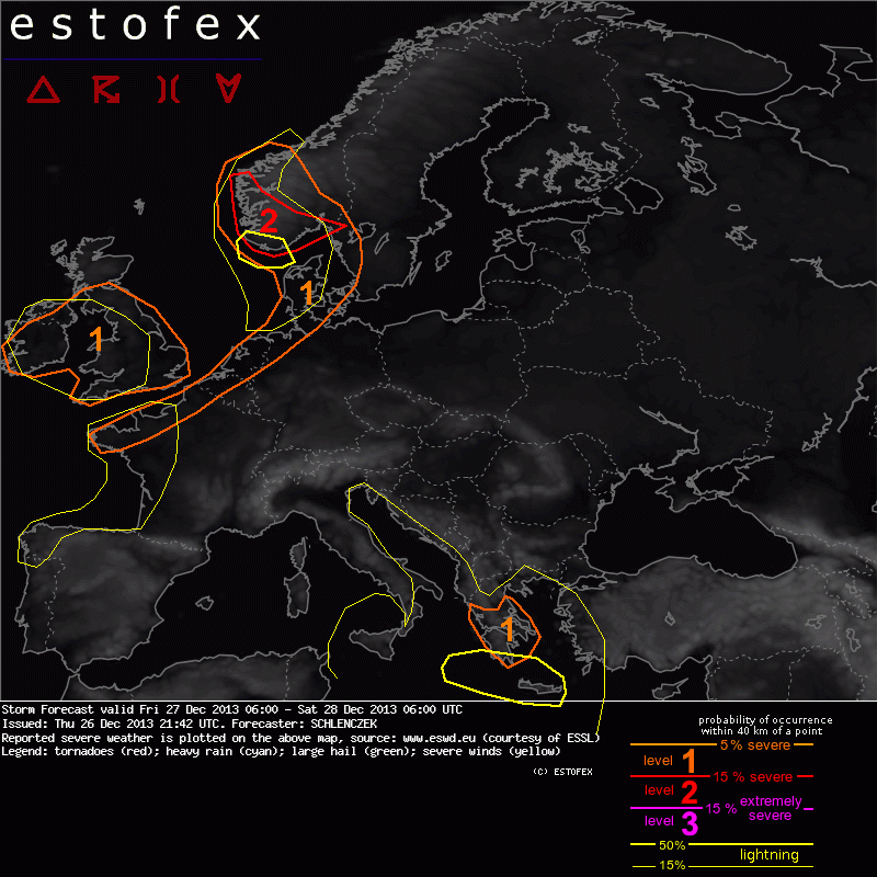 ESTOFEX Severe Weather Forecast 12/27/2013 0600UTC