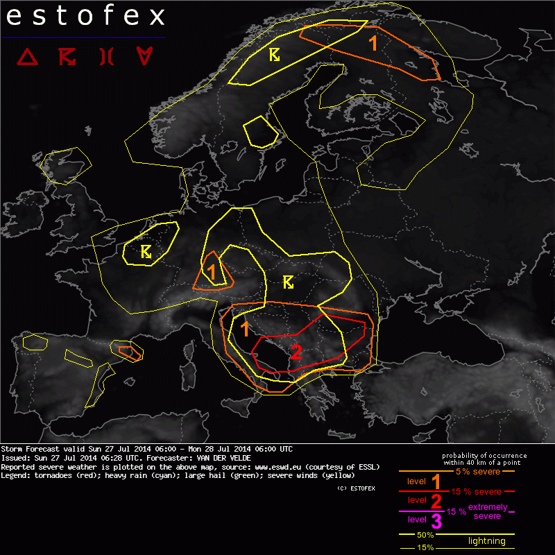 ESTOFEX Severe Weather Forecast 07/27/2014 0600UTC