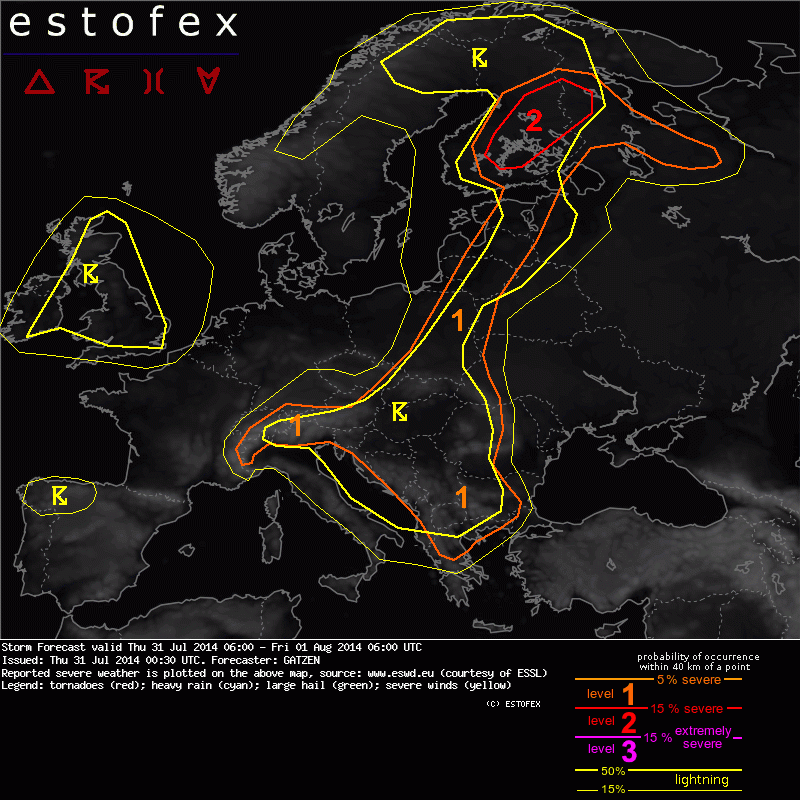 ESTOFEX Severe Weather Forecast 07/31/2014 0600UTC