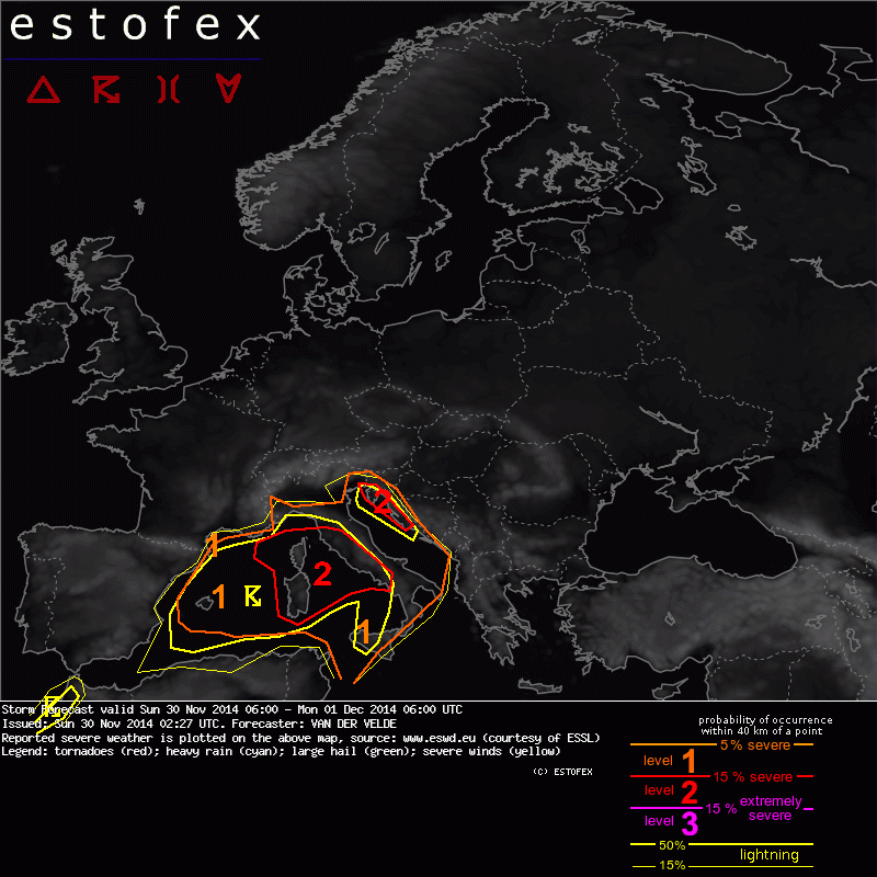 ESTOFEX Severe Weather Forecast 30/11/2014 0600UTC