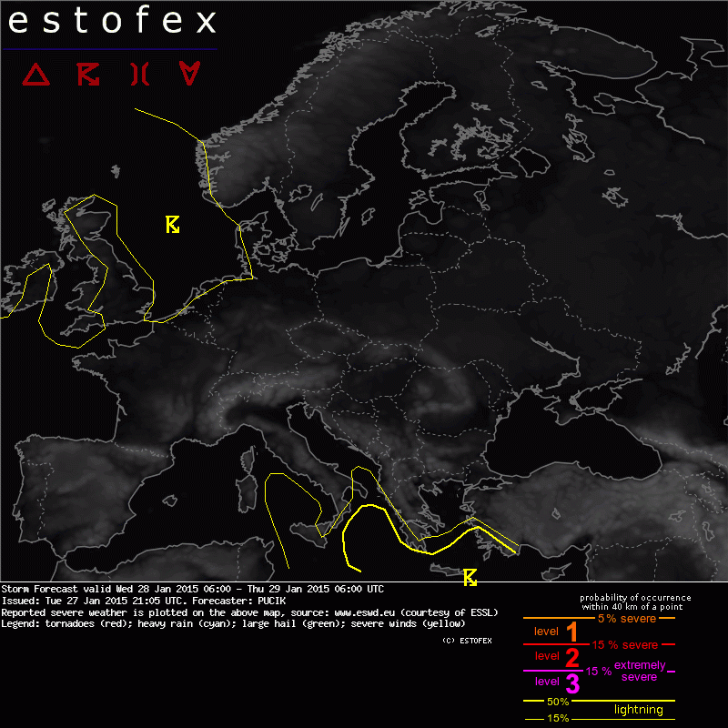 ESTOFEX Severe Weather Forecast 28/01/2015 0600UTC