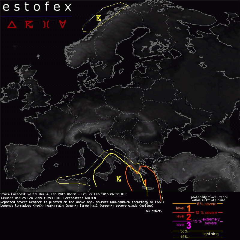 ESTOFEX Severe Weather Forecast 26/02/2015 0600UTC