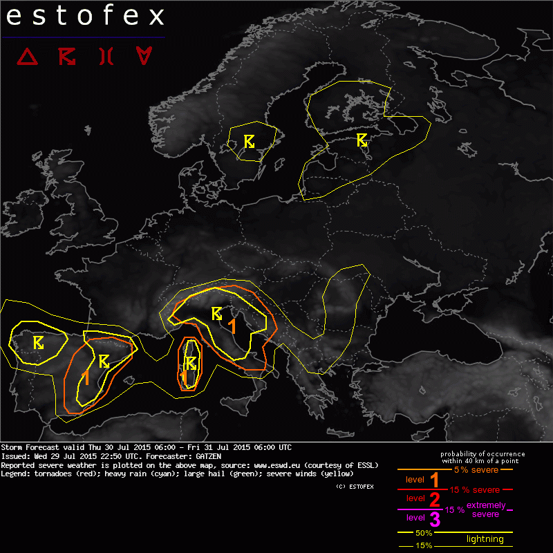 ESTOFEX Severe Weather Forecast 30/07/2015 0600UTC