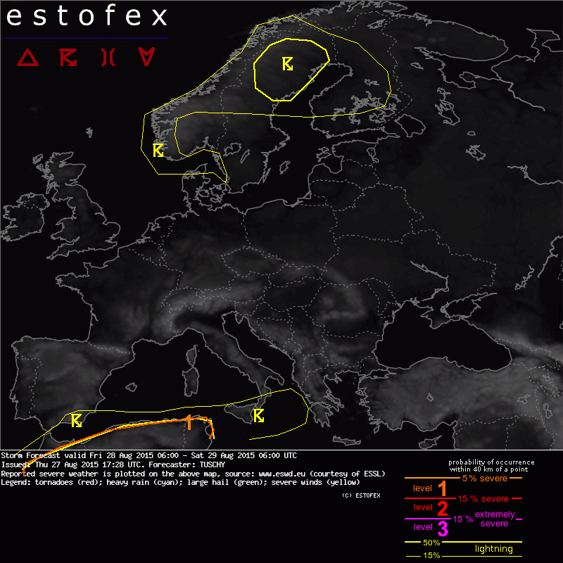 ESTOFEX Severe Weather Forecast 28/08/2015 0600UTC