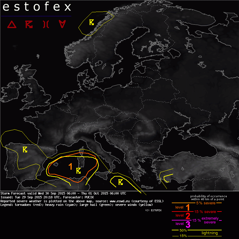 ESTOFEX Severe Weather Forecast 30/09/2015 0600UTC