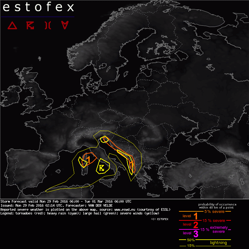 ESTOFEX Severe Weather Forecast 29/02/2016