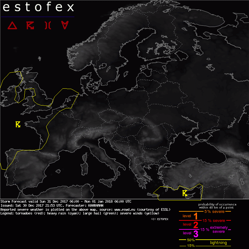 ESTOFEX Storm Forecast Valid: Sun 31 Dec 2017 06:00 to Mon 01 Jan 2018 06:00 UTC